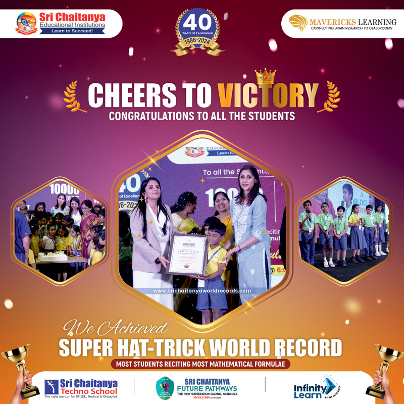 Sri Chaitanya Schools boasts a remarkable history of setting world records, a testament to our innovative teaching methods, a unique approach –Mavericks Learning Approach, and student dedication.