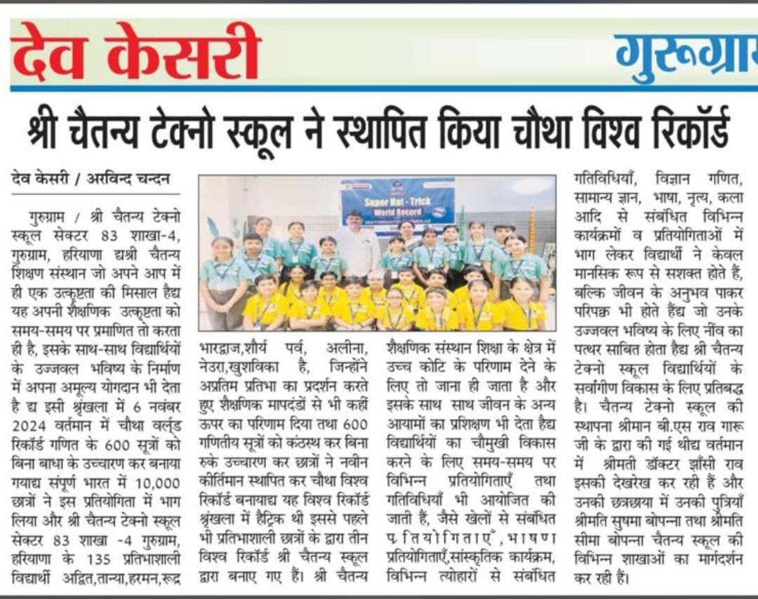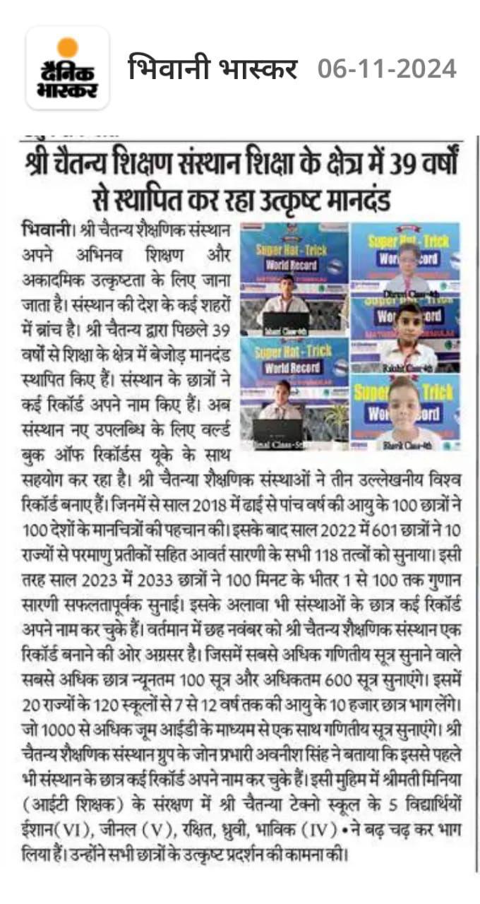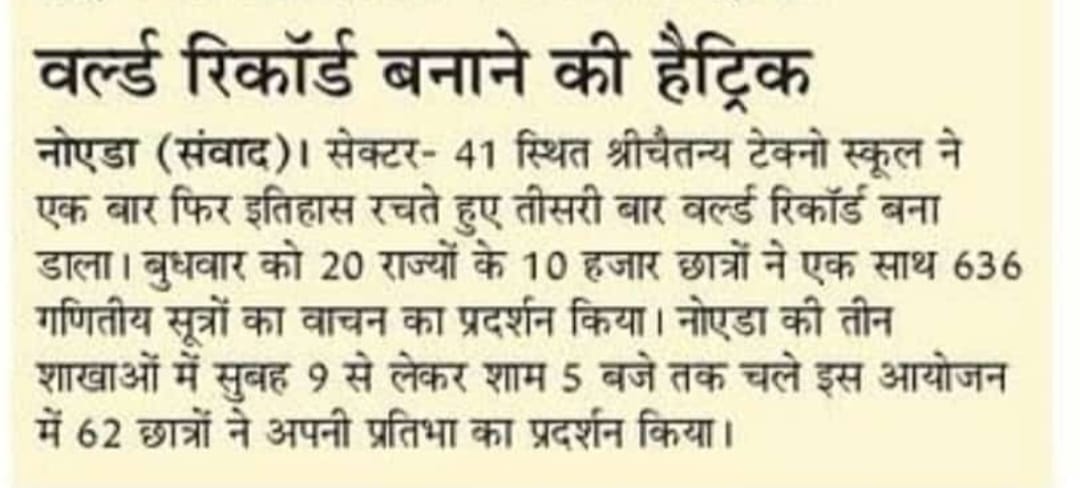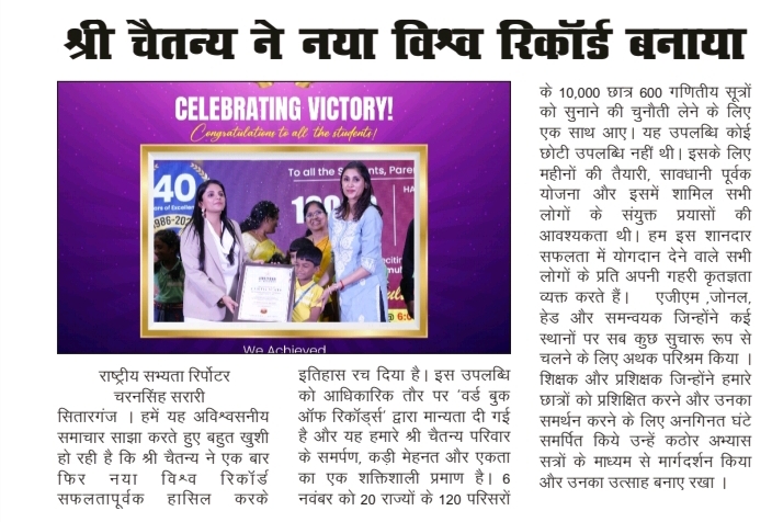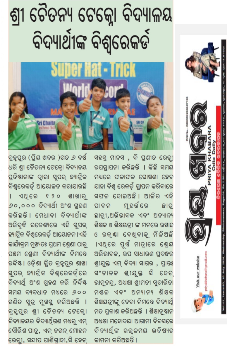 ଶ୍ରୀ ଚୈତନ୍ୟ ଟେକ୍ନୋ ସ୍କୁଲ୍ ଏବେ ଚର୍ଚ୍ଚାରେ - ୫ ଜଣ ବିଦ୍ୟାର୍ଥୀଙ୍କ ବିଶ୍ୱରେକର୍ଡ ହାସଲ