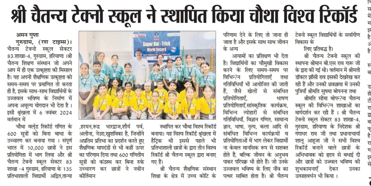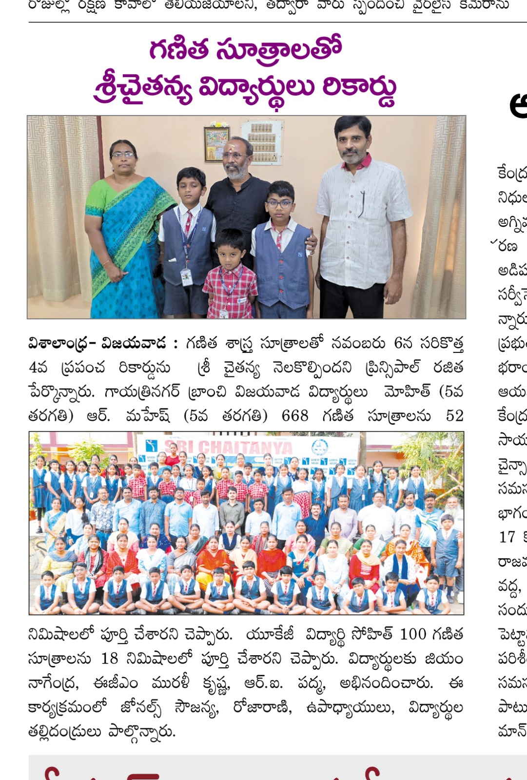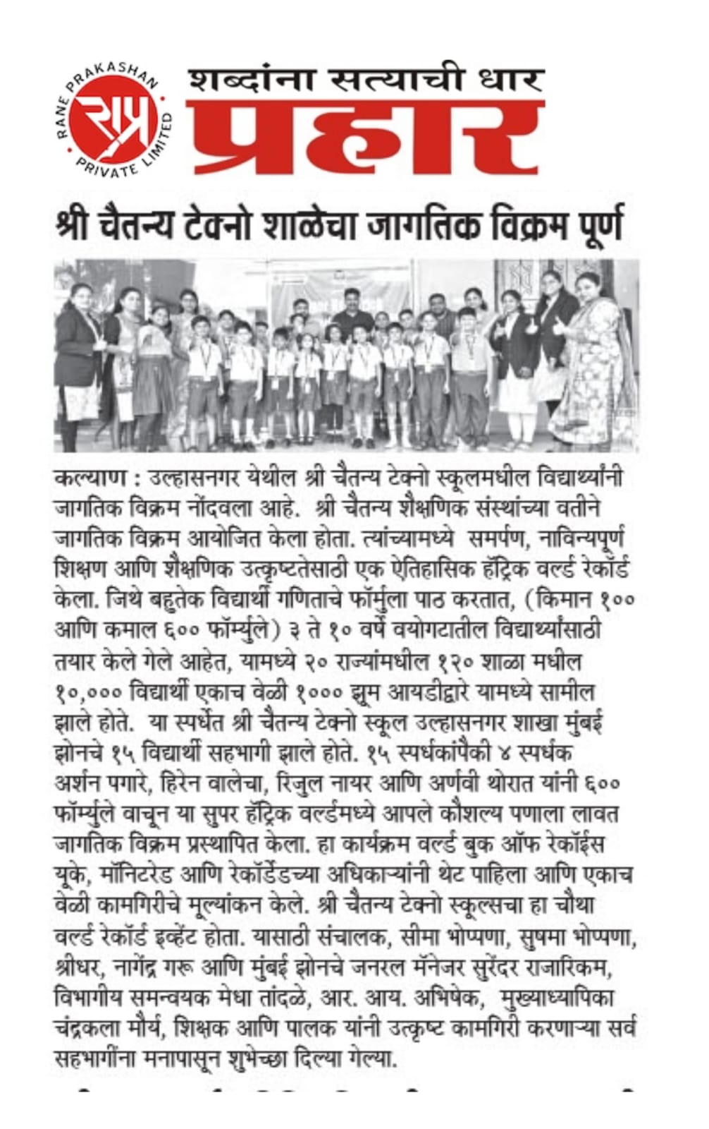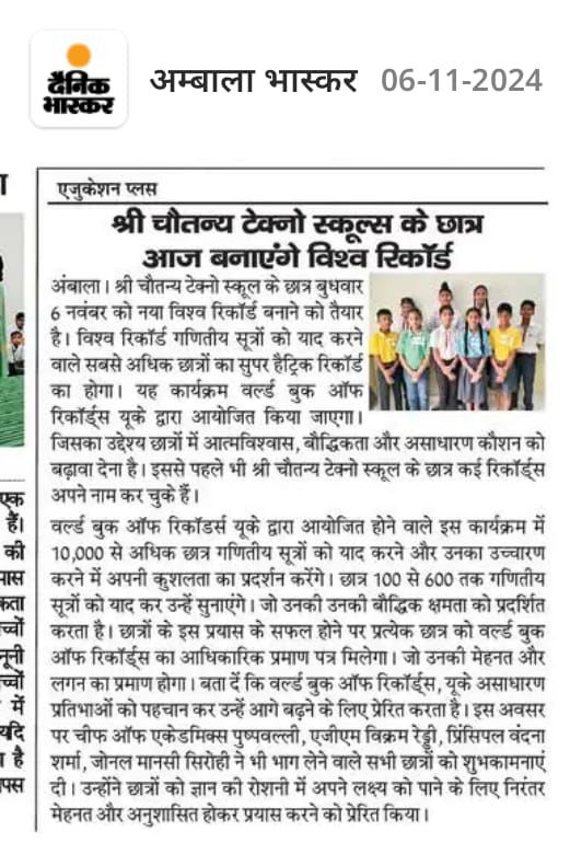 ଶ୍ରୀ ଚୈତନ୍ୟ ଟେକ୍ନୋ ସ୍କୁଲ୍ ଏବେ ଚର୍ଚ୍ଚାରେ - ୫ ଜଣ ବିଦ୍ୟାର୍ଥୀଙ୍କ ବିଶ୍ୱରେକର୍ଡ ହାସଲ