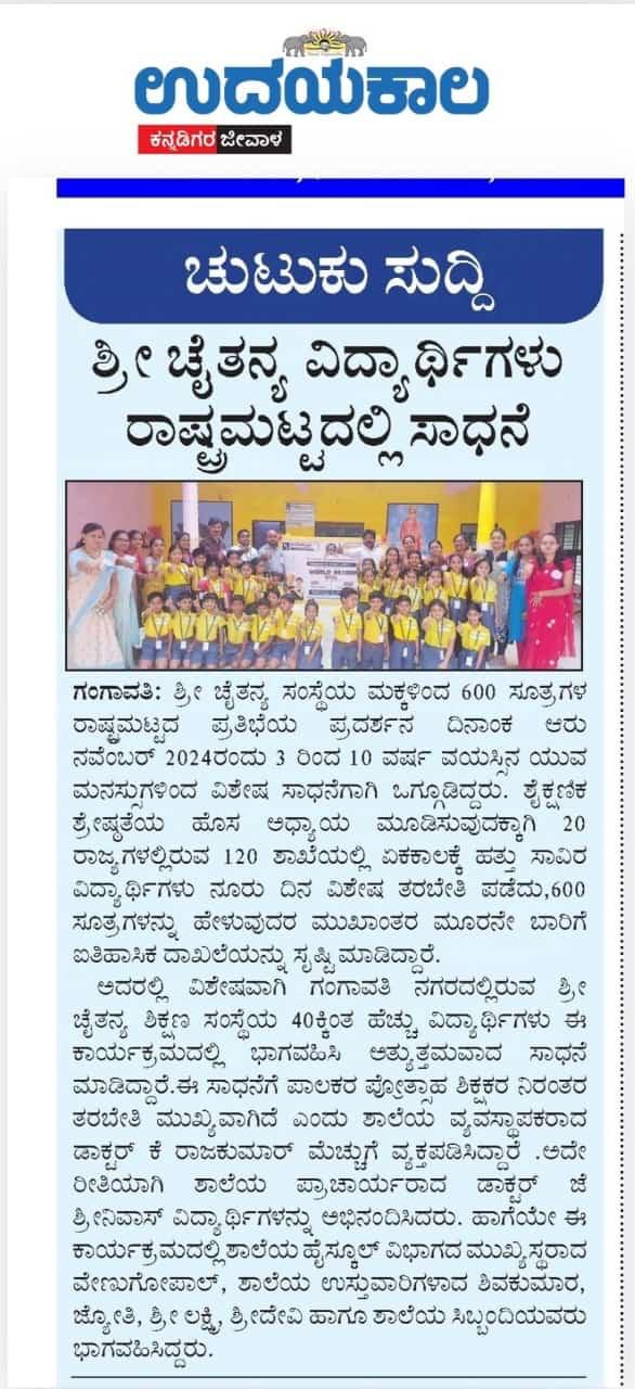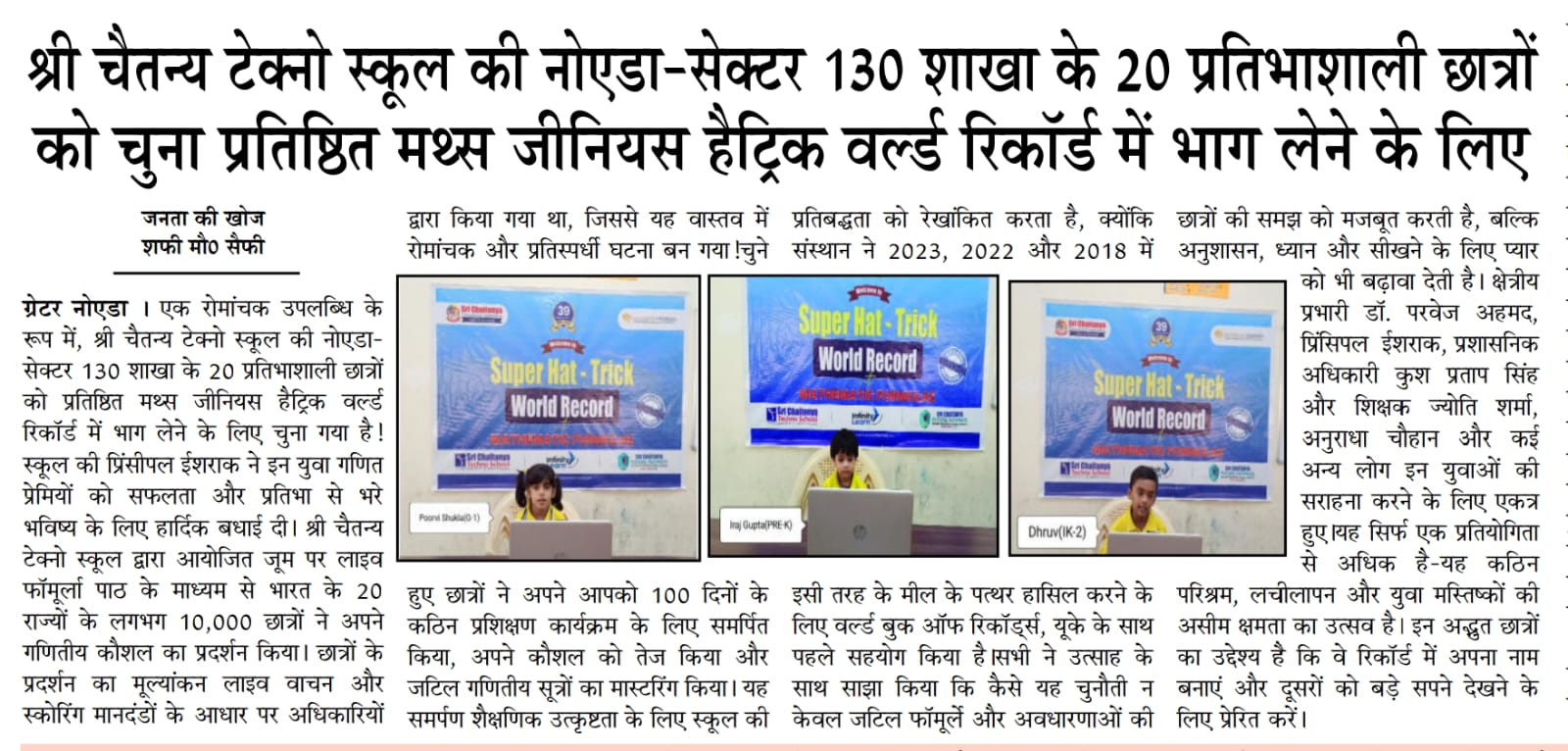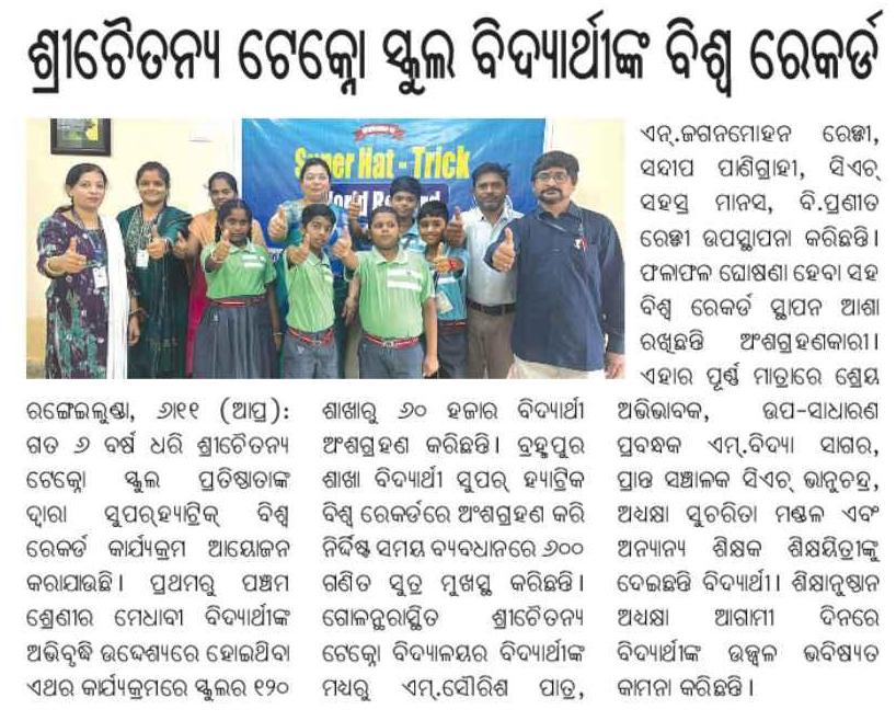 ଶ୍ରୀ ଚୈତନ୍ୟ ଟେକ୍ନୋ ସ୍କୁଲ୍ ଏବେ ଚର୍ଚ୍ଚାରେ - ୫ ଜଣ ବିଦ୍ୟାର୍ଥୀଙ୍କ ବିଶ୍ୱରେକର୍ଡ ହାସଲ